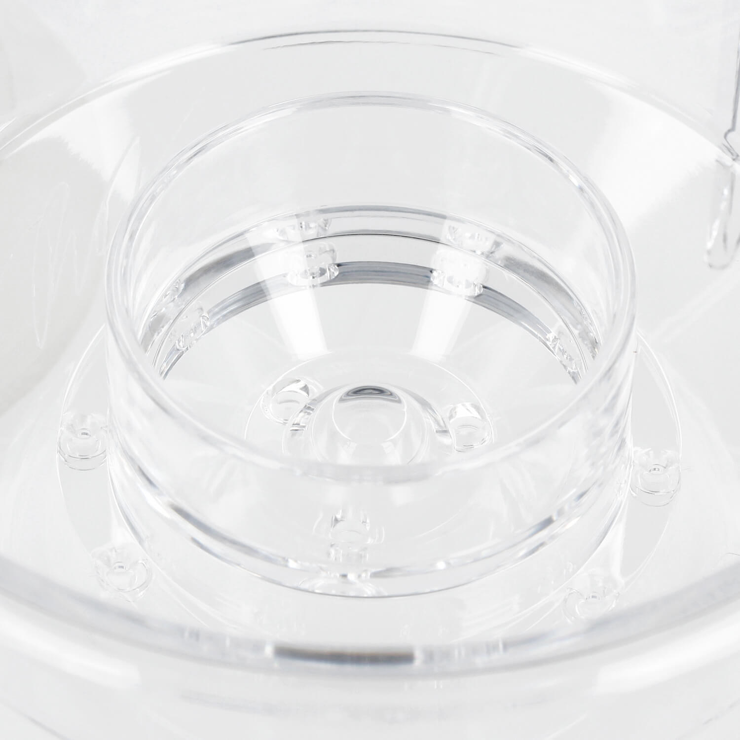 The Drip-Assist features two channels: an inner ring with larger holes for faster flow and agitation, and an outer ring with smaller holes for a gentle shower. This dual design allows for varied water dispersion patterns.