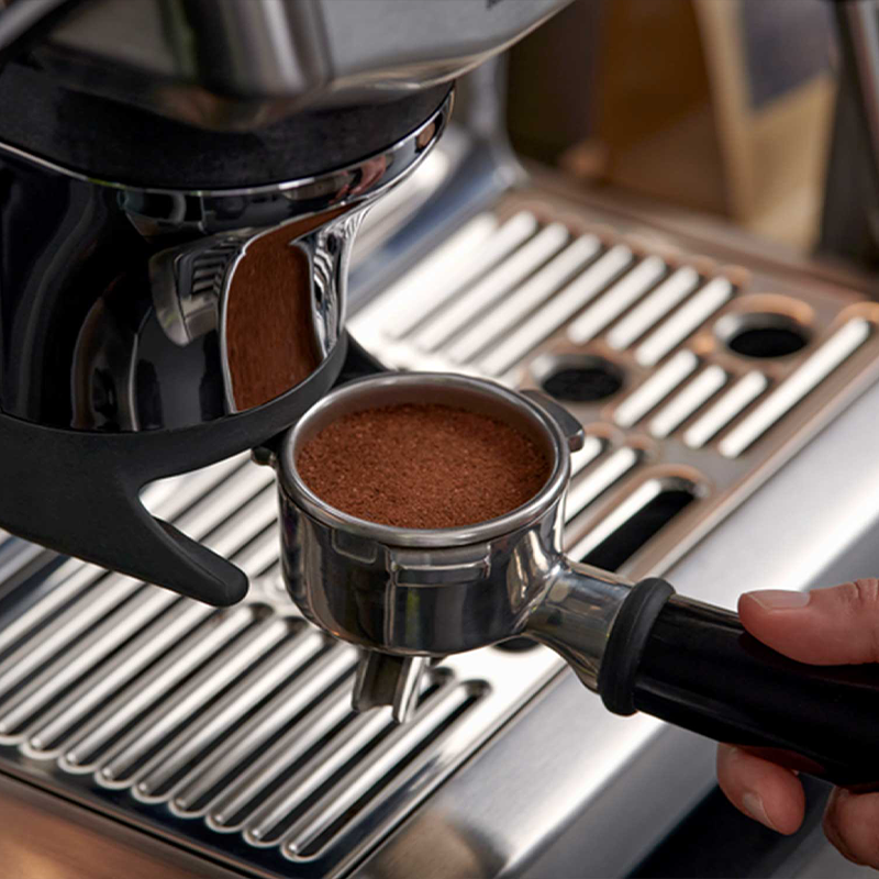 The Barista Express includes a Dosing Funnel™ attachment to prevent coffee grinds from overflowing, reducing mess and waste during grinding and tamping.